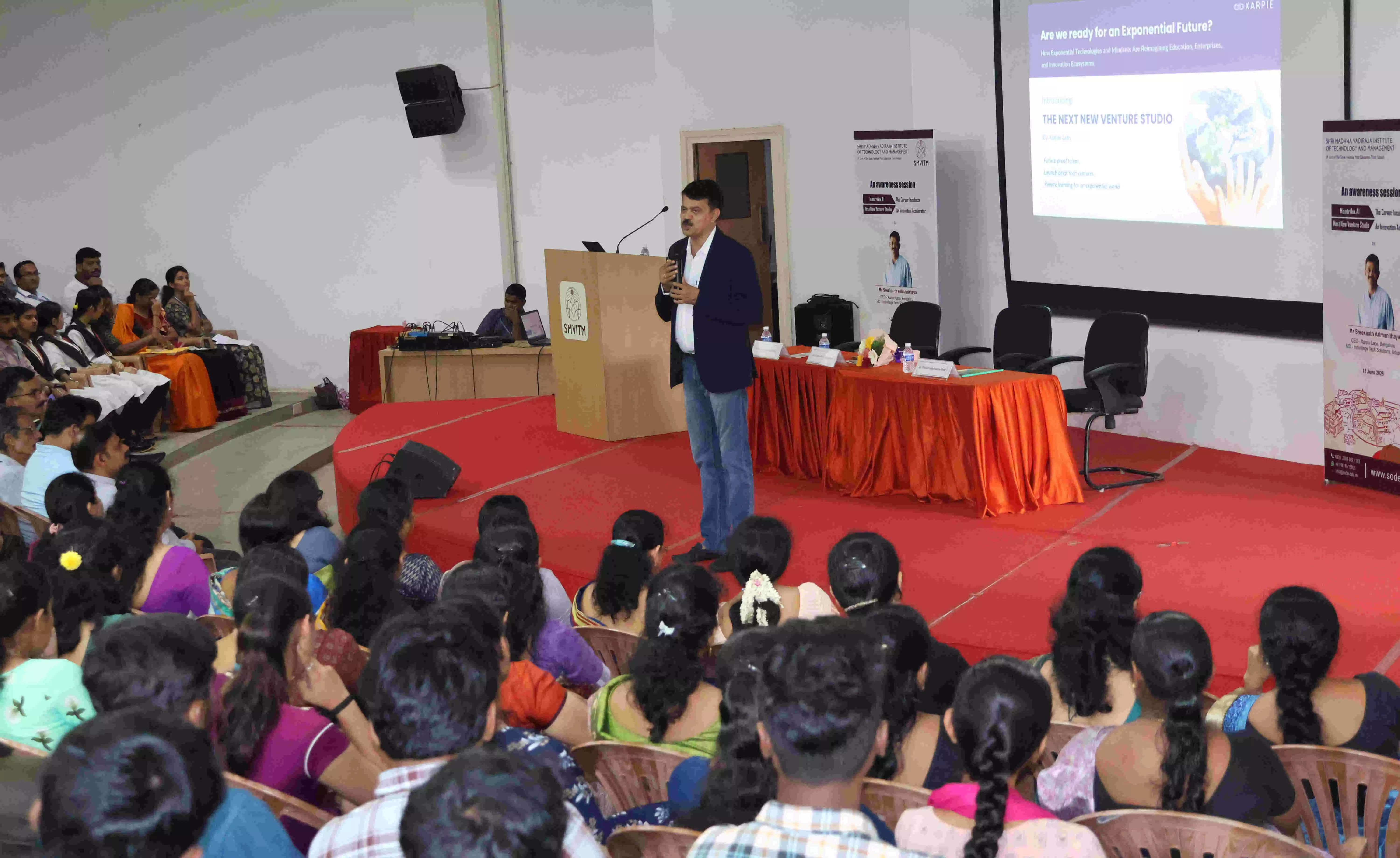 ಉಡುಪಿ: ಬಂಟಕಲ್ಲು ಶ್ರೀ ಮಧ್ವ ವಾದಿರಾಜ ತಾಂತ್ರಿಕ ಮಹಾ ವಿದ್ಯಾಲಯದ ಉದ್ಯಮಶೀಲತಾ ಅಭಿವೃದ್ಧಿ ಘಟಕವು ಇನ್ಕ್ಯುಬೇಷನ್ ಕೇಂದ್ರದ ಸಹಯೋಗದೊಂದಿಗೆ ಮಾಂತ್ರಿಕ ಎಐ- ದಿ ಕೆರಿಯರ್ ಇನ್ಕ್ಯುಬೇಟರ್ ಎಂಬ ವಿಷಯದ ಕುರಿತು ಉಪನ್ಯಾಸ ಕಾರ್ಯಕ್ರಮವನ್ನು ಗುರುವಾರ ಆಯೋಜಿಸಲಾಗಿತ್ತು.