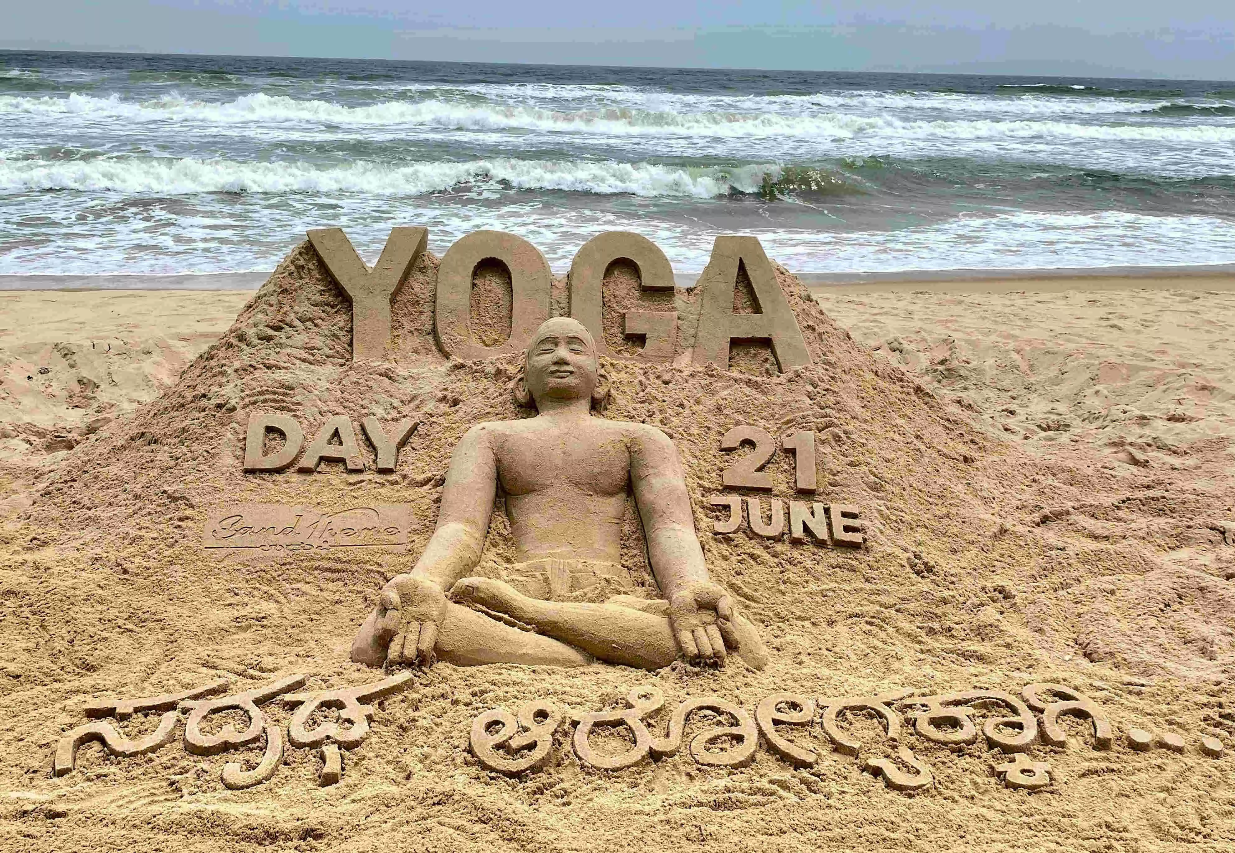 ಯೋಗ ದಿನಾಚರಣೆ ಜಾಗೃತಿಗಾಗಿ ಮರಳುಶಿಲ್ಪ ಕಲಾಕೃತಿ