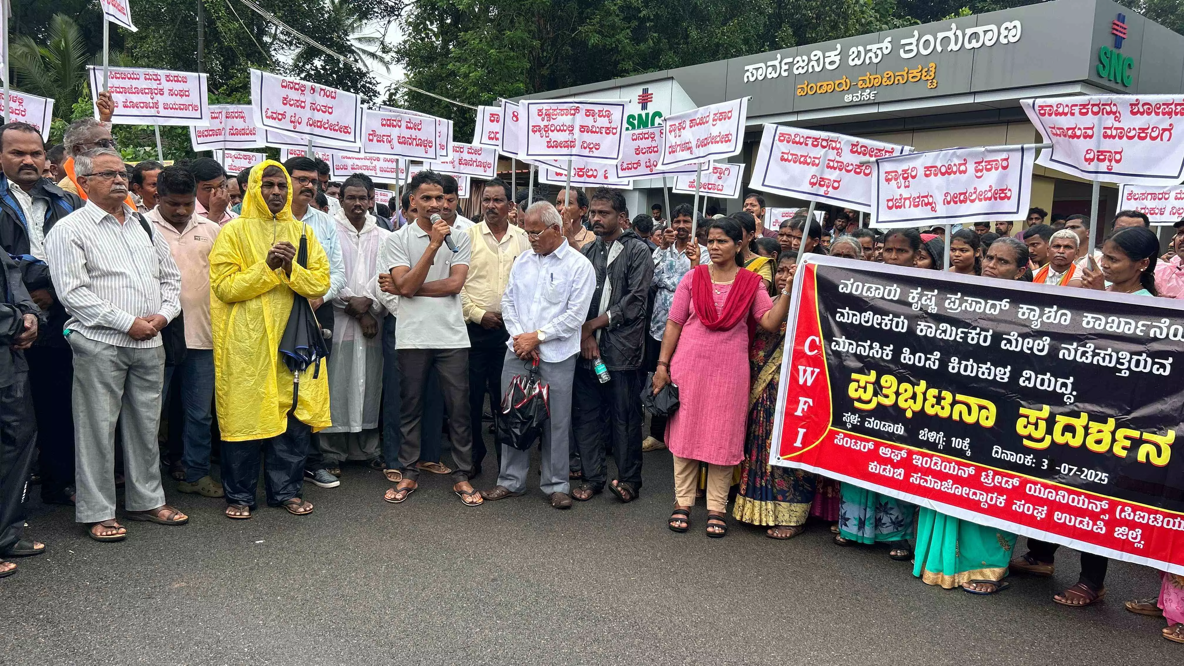 ಪ್ರತಿಭಟನಕಾರರನ್ನುದ್ದೇಶಿಸಿ ಮಾತನಾಡಿದ ಸಿಐಟಿಯು ಉಡುಪಿ ಜಿಲ್ಲಾ ಪ್ರಧಾನ ಕಾರ್ಯದರ್ಶಿ ಸುರೇಶ್ ಕಲ್ಲಾಗರ, ಈ ಫ್ಯಾಕ್ಟರಿಯಲ್ಲಿ ಇತ್ತೀಚೆಗೆ ಪ್ರವೀಣ್ ಎಂಬ ಕಾರ್ಮಿಕನಿಗೆ ಕಿರುಕುಳ ನೀಡಲಾದ ಬಗ್ಗೆ ಶಂಕರನಾರಾಯಣ ಪೊಲೀಸ್ ಠಾಣೆಯಲ್ಲಿ ದೂರು ದಾಖಲಾಗಿದೆ. ಕಾರ್ಮಿಕ ಇಲಾಖೆಗೆ ದೂರು ನೀಡಲಾಗಿದ್ದು ಆರೋಪಿ ಯಾವುದೇ ಪ್ರಭಾವ ಹೊಂದಿದ್ದರೂ ಕೂಡ ಅಂತಹವರ ವಿರುದ್ಧ ಕಾನೂನು ಕ್ರಮ ಜರುಗಿಸಿ ಅನ್ಯಾಯಕ್ಕೊಳಗಾದವರಿಗೆ ನ್ಯಾಯ ಒದಗಿಸಬೇಕು. ಅಗತ್ಯ ಕ್ರಮ ವಹಿಸದಿದ್ದಲ್ಲಿ ಜಿಲ್ಲಾಧಿಕಾರಿ, ಕಾರ್ಮಿಕ ಇಲಾಖೆ ಎದುರು ಉಗ್ರ ಪ್ರತಿಭಟನೆ ನಡೆಸಲಾಗುವುದು ಎಂದು ಎಚ್ಚರಿಸಿದರು.