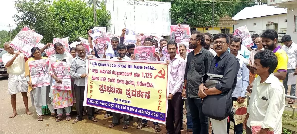 ಕಲ್ಯಾಣ ಮಂಡಳಿ ನಿಧಿ ದುರ್ಬಳಕೆ ವಿರೋಧಿಸಿ ಕಟ್ಟಡ ಕಾರ್ಮಿಕರ ಪ್ರತಿಭಟನೆ