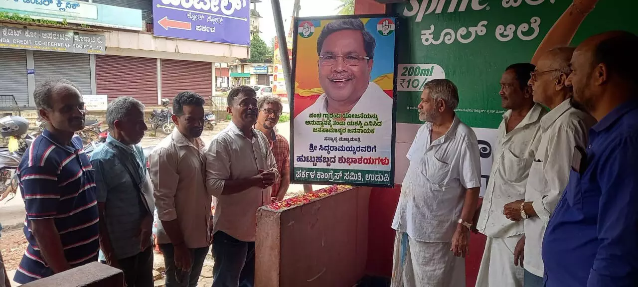 ಪರ್ಕಳದಲ್ಲಿ ಸಿಎಂ ಸಿದ್ದರಾಮಯ್ಯ ಕಟೌಟ್ಗೆ ಕ್ಷೀರಾಭಿಷೇಕ