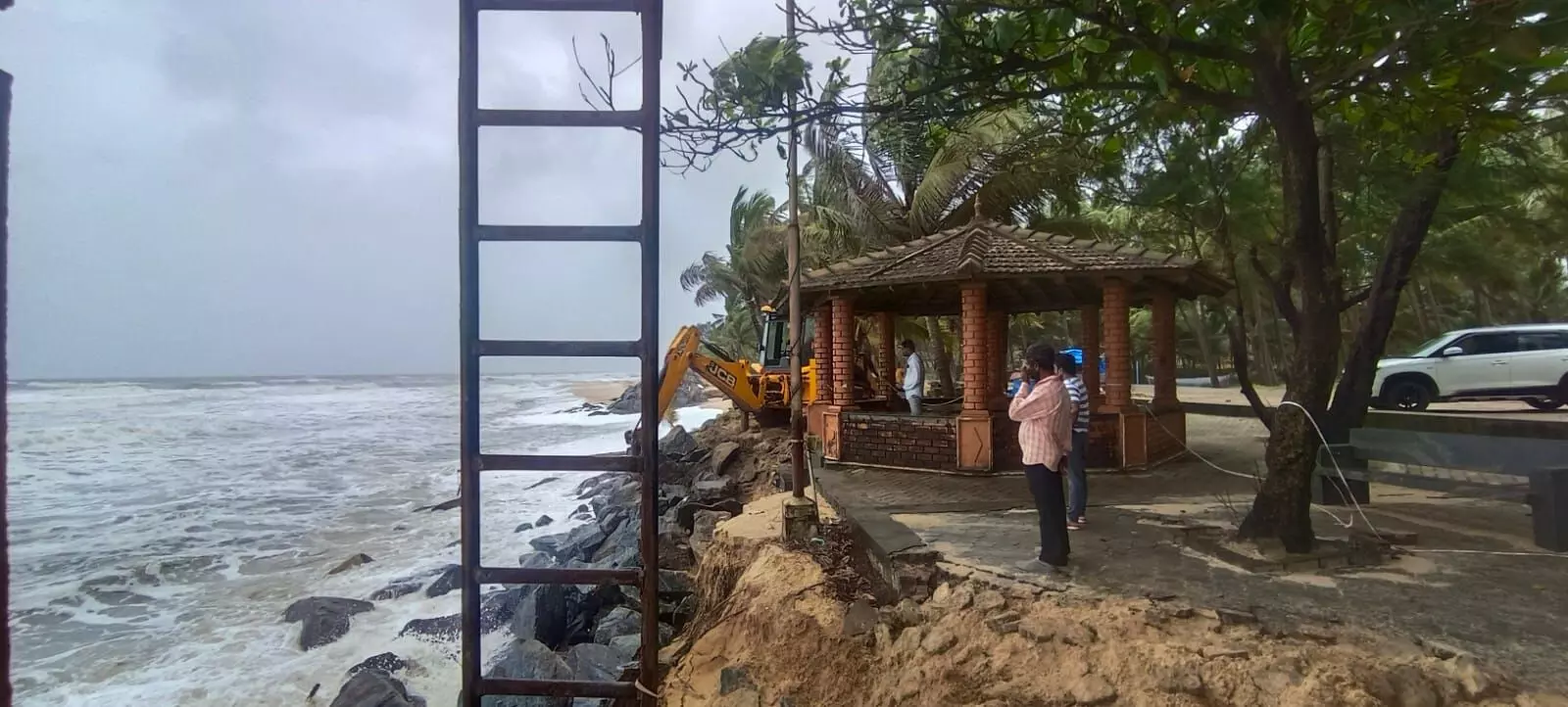 ಪಡುಬಿದ್ರೆ ಬೀಚ್ ನಲ್ಲಿ ಕಡಲ್ಕೊರೆತ ತೀವ್ರ: ರಂಗ ವೇದಿಕೆ, ವಾಚಿಂಗ್ ಟವರ್ ಸಮುದ್ರಪಾಲಾಗುವ ಭೀತಿ