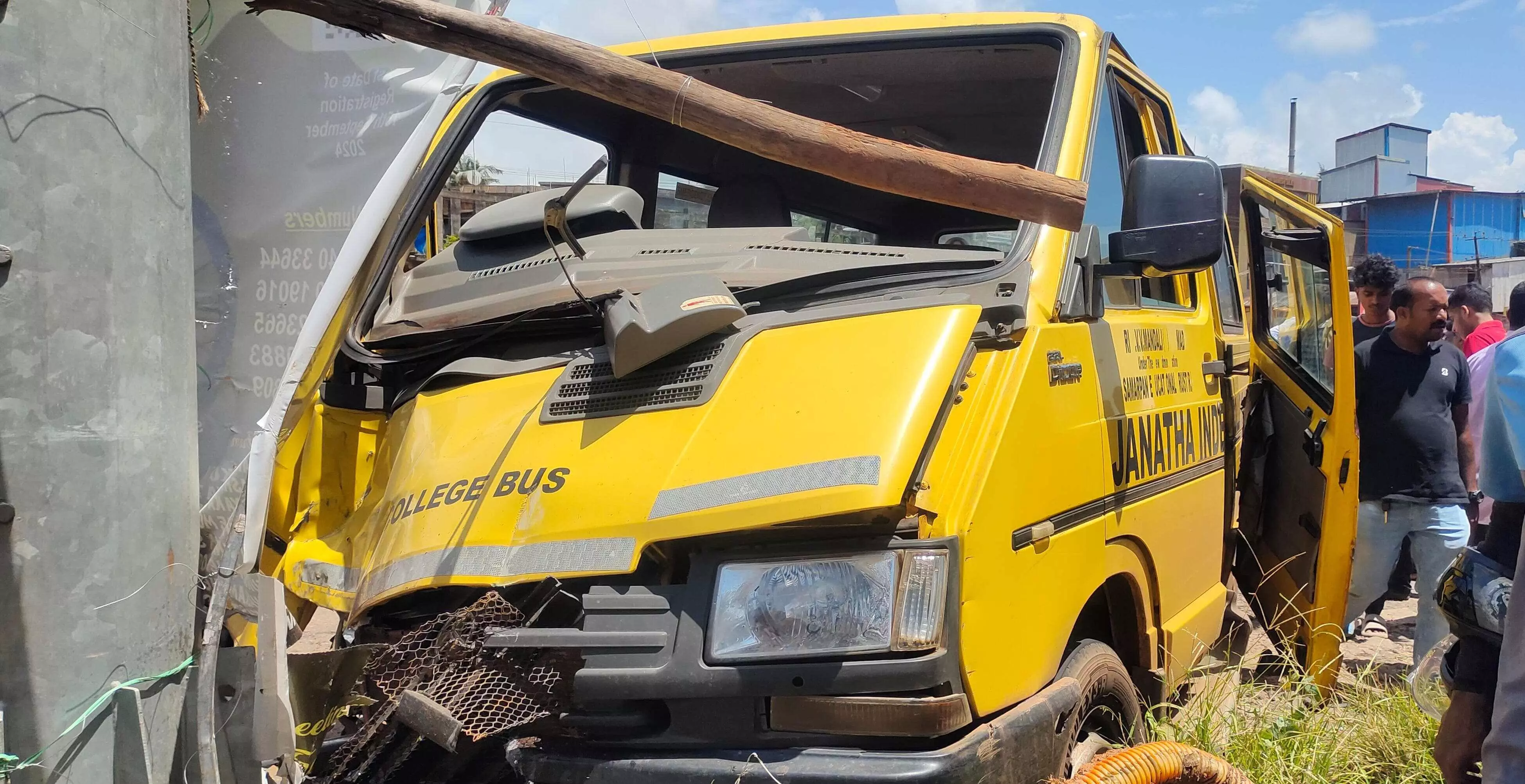 ಹೆಮ್ಮಾಡಿಯ ಜನತಾ ಪಿಯು ಕಾಲೇಜಿನ ಶಾಲಾ ವಾಹನ ಇದಾಗಿದ್ದು, ಚಾಲಕನ ಅತೀ ವೇಗವೇ ಅಪಘಾತಕ್ಕೆ ಕಾರಣ ಎನ್ನಲಾಗಿದೆ. ಹೆದ್ದಾರಿಯಲ್ಲಿ ಬೈಕೊಂದಕ್ಕೆ ಢಿಕ್ಕಿ ತಪ್ಪಿಸುವ ಭರದಲ್ಲಿ ಚಾಲಕನ ನಿಯಂತ್ರಣ ಕಳೆದುಕೊಂಡ ವಾಹನ ಹೆದ್ದಾರಿ ಪಕ್ಕದ ವಿದ್ಯುತ್ ಕಂಬಕ್ಕೆ ಢಿಕ್ಕಿ ಹೊಡೆದಿದೆ. ಅಪಘಾತದ ತೀವ್ರತೆಗೆ ಹೈಮಾಸ್ಟ್ ವಿದ್ಯುತ್ ಕಂಬ ಮುರಿದುಬಿದ್ದಿದೆ. ಶಾಲಾ ವಾಹನದಲ್ಲಿ ವಿದ್ಯಾರ್ಥಿಗಳು ಇಲ್ಲದೇ ಇದ್ದುದರಿಂದ ಸಂಭವಿಸಬಹುದಾಗಿದ್ದ ಅನಾಹುತ ತಪ್ಪಿದೆ.