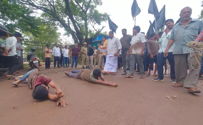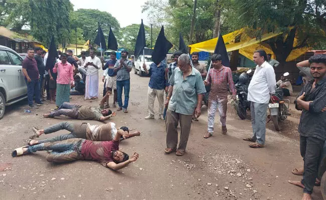ಕಪ್ಪು ಬಾವುಟ ಪ್ರದರ್ಶನ, ಉರುಳು ಸೇವೆ; ಮೂವರು ತೀವ್ರ ಅಸ್ವಸ್ಥ