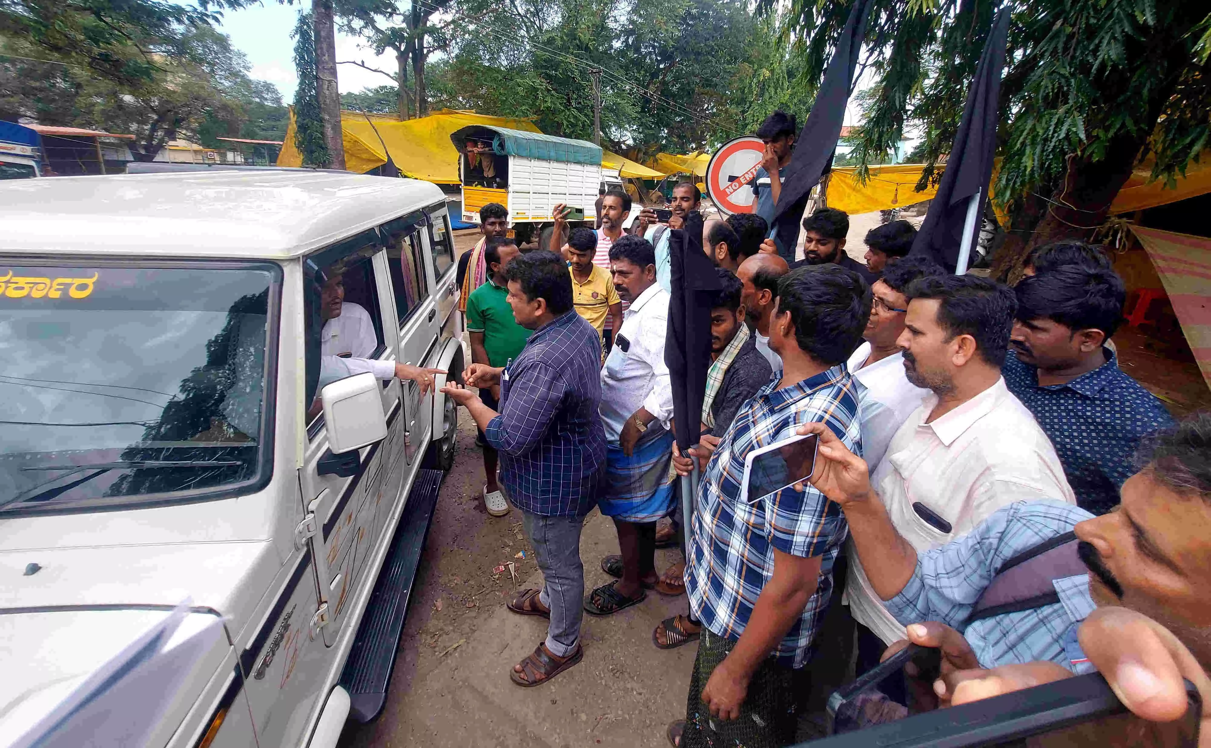 ಜೀಪಿನಲ್ಲಿ ತನ್ನ ಕಚೇರಿಗೆ ಪ್ರತಿಭಟನಾ ಸ್ಥಳವನ್ನು ಹಾದು ಹೋಗುತ್ತಿದ್ದ ಎಪಿಎಂಸಿ ಪ್ರಭಾರ ಕಾರ್ಯದರ್ಶಿ ಗೋಪಾಲ ತಿಮ್ಮಪ್ಪ ಕಾಕನೂರು ಅವರನ್ನು ವರ್ತಕರು ತೀವ್ರ ತರಾಟೆಗೆ ತೆಗೆದುಕೊಂಡರು.