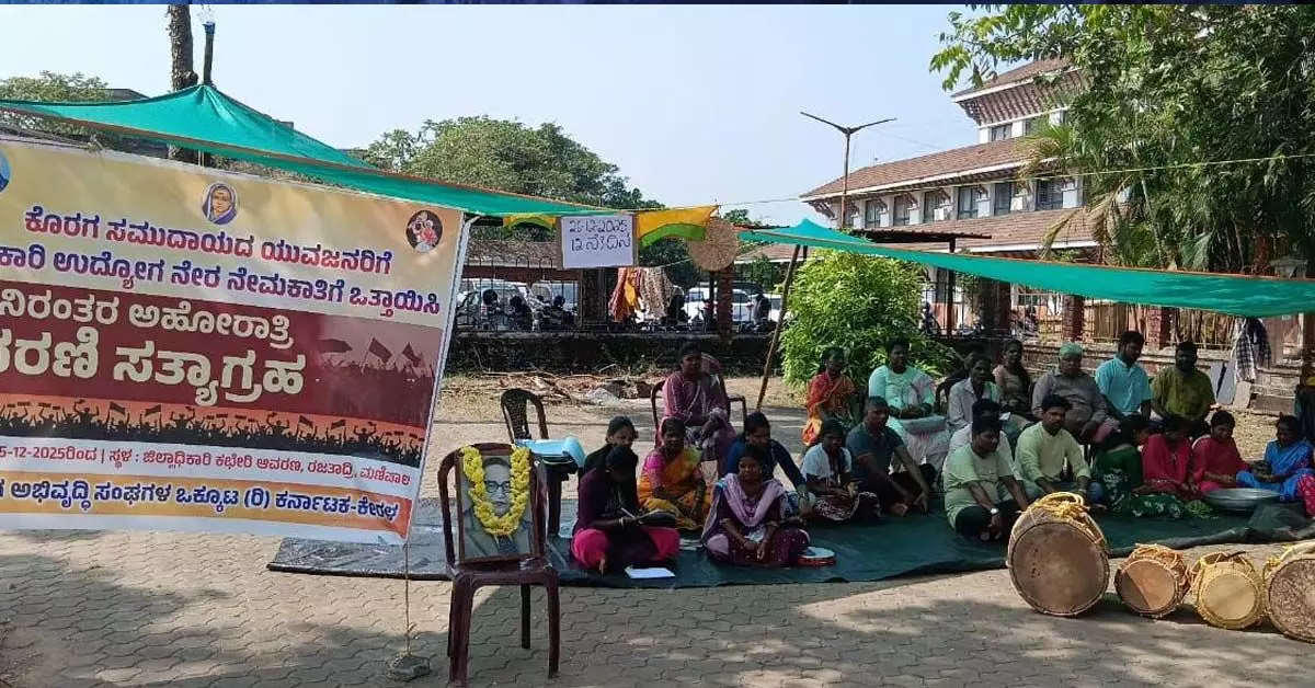 ಅಳಿವಿನಂಚಿನಲ್ಲಿರುವ ಮೂಲನಿವಾಸಿಗಳೆಂದು ಗುರುತಿಸಲಾದ ಕೊರಗ ಸಮುದಾಯ ಈಗಲೂ ಸಮಾಜದ ಎಲ್ಲಾ ಕ್ಷೇತ್ರಗಳಲ್ಲೂ ತೀರಾ ಹಿಂದುಳಿ ದಿದ್ದು, ಸರಕಾರ ಈಗಾಗಲೇ ಒಪ್ಪಿಕೊಂಡು ಬಜೆಟ್ನಲ್ಲೂ ಪ್ರಕಟಿಸಿರುವ ತಮ್ಮ ಬಹುಕಾಲದ ಬೇಡಿಕೆಯಾದ ಕೊರಗ ಸಮುದಾಯದ ಯುವಜನತೆಗೆ ಸರಕಾರಿ ಉದ್ಯೋಗದಲ್ಲಿ ನೇರ ನೇಮಕಾತಿಗೆ ಒತ್ತಾಯಿಸಿ ಡಿ.15ರಿಂದ ಅನಿರ್ಧಿಷ್ಟಾವಧಿ ಅಹೋರಾತ್ರಿ ಧರಣಿಯನ್ನು ಪ್ರಾರಂಭಿಸಿತ್ತು.