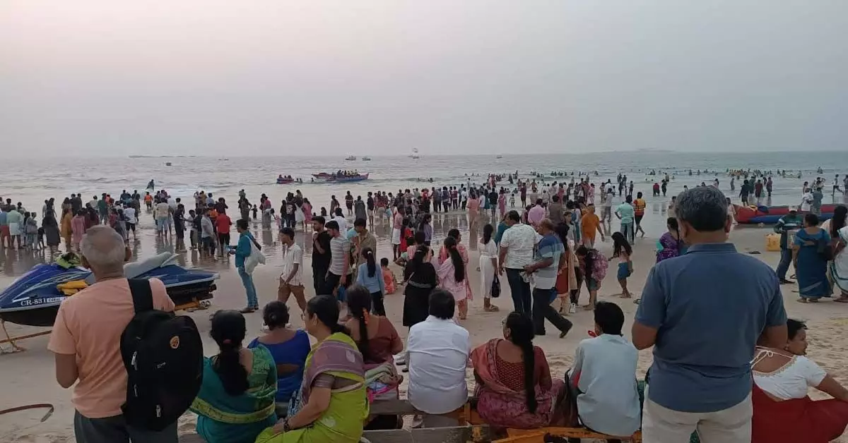 ಅಂತಾರಾಷ್ಟ್ರೀಯ ಮಟ್ಟದಲ್ಲಿ ಪ್ರಮುಖ ಪ್ರವಾಸಿ ತಾಣವಾಗಿ ಬೆಳೆಯುತ್ತಿರುವ ಮಲ್ಪೆ ಬೀಚ್ನಲ್ಲಿ ಕಳೆದ ಕೆಲವು ದಿನಗಳಿಂದ ಜನಸಾಗರವೇ ಹರಿದು ಬರುತ್ತಿವೆ. ಇಂದು ಕೂಡ ಸಹಸ್ರಾರು ಸಂಖ್ಯೆಯಲ್ಲಿ ಪ್ರವಾಸಿಗರು ಕಿಕ್ಕಿರಿದು ತುಂಬಿರುವುದು ಕಂಡುಬಂತು.