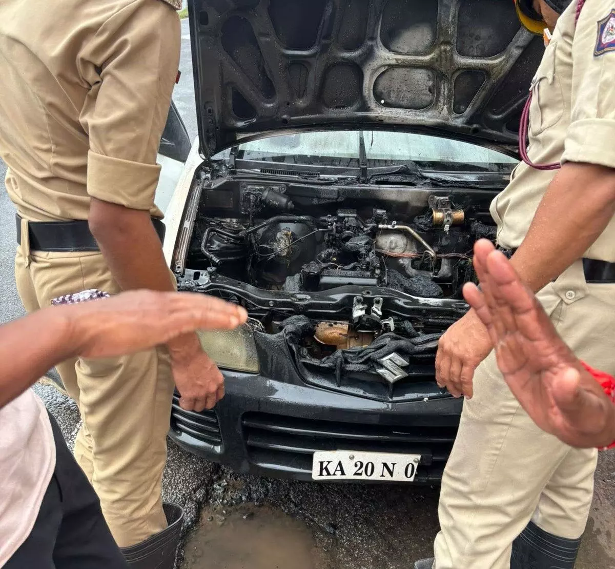 ಕೂಡಲೇ ಮಾಹಿತಿ ತಿಳಿದು ಸ್ಥಳಕ್ಕೆ ಆಗಮಿಸಿದ ಅಗ್ನಿಶಾಮಕ ದಳದ ಸಿಬ್ಬಂದಿ, ಬೆಂಕಿ ನಂದಿಸುವಲ್ಲಿ ಯಶಸ್ವಿಯಾದರು. ಕಾರಿನ ಬ್ಯಾಟರಿಯಲ್ಲಿ ಶಾರ್ಟ್ ಸಕ್ಯೂಟ್ ಆದ ಕಾರಣ ಈ ಘಟನೆ ನಡೆದಿದೆ ಎಂದು ತಿಳಿದುಬಂದಿದೆ. ಈ ಅವಘಡದಿಂದ ಕಾರಿಗೆ ಹಾನಿಯಾಗಿದೆ.