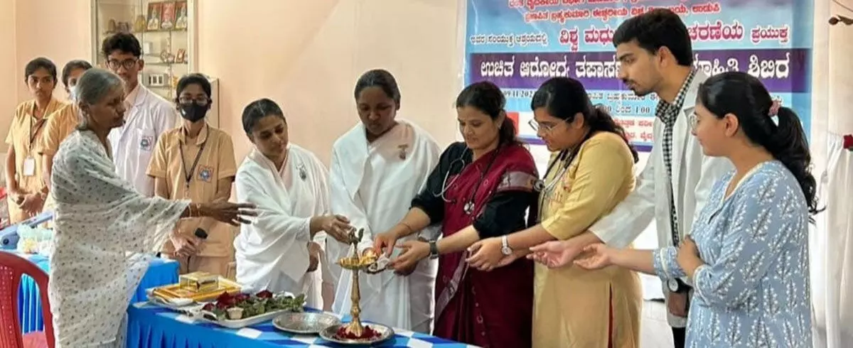 ಉಡುಪಿ, ನ.9: ಜಿಲ್ಲಾ ಆರೋಗ್ಯ ಮತ್ತು ಕುಟುಂಬ ಕಲ್ಯಾಣ ಇಲಾಖೆ, ಜಿಲ್ಲಾ ಆಸ್ಪತ್ರೆ ಉಡುಪಿ ಎನ್ಸಿಡಿ ವಿಭಾಗ, ಜಿಲ್ಲಾ ಸರ್ವೇಕ್ಷಣ ಘಟಕ ಎನ್ಸಿಡಿ, ಸಮುದಾಯ ವೈದ್ಯಕೀಯ ವಿಭಾಗ ಹಾಗು ದಂತ ವೈದಕೀಯ ವಿಭಾಗ ಮಣಿಪಾಲ್, ಪ್ರಸಾದ್ ನೇತ್ರಾಲಯ ಉಡುಪಿ ಹಾಗೂ ಪ್ರಜಾಪಿತ ಬ್ರಹ್ಮಕುಮಾರಿ ಈಶ್ವರಿ ವಿಶ್ವವಿದ್ಯಾಲಯ ಉಡುಪಿ ಇವರ ಸಂಯುಕ್ತ ಆಶ್ರಯದಲ್ಲಿ ವಿಶ್ವ ಮಧುಮೇಹ ದಿನಾಚರಣೆಯ ಪ್ರಯುಕ್ತ ಉಚಿತ ಆರೋಗ್ಯ ತಪಾಸಣಾ ಮತ್ತು ಮಾಹಿತಿ ಶಿಬಿರ ಇಂದು ಉಡುಪಿಯ ಪ್ರಜಾಪಿತ ಬ್ರಹ್ಮಕುಮಾರಿ ಈಶ್ವರಿ ವಿಶ್ವವಿದ್ಯಾಲಯದಲ್ಲಿ ಜರಗಿತು.