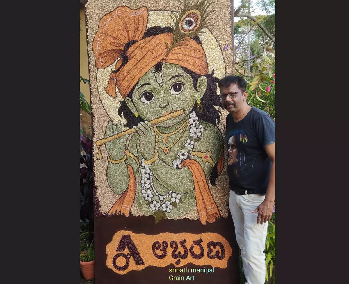 ಉಡುಪಿ: ವಿವಿಧ ಧಾನ್ಯಗಳಲ್ಲಿ ಮೂಡಿಬಂದ ಶ್ರೀಕೃಷ್ಣ