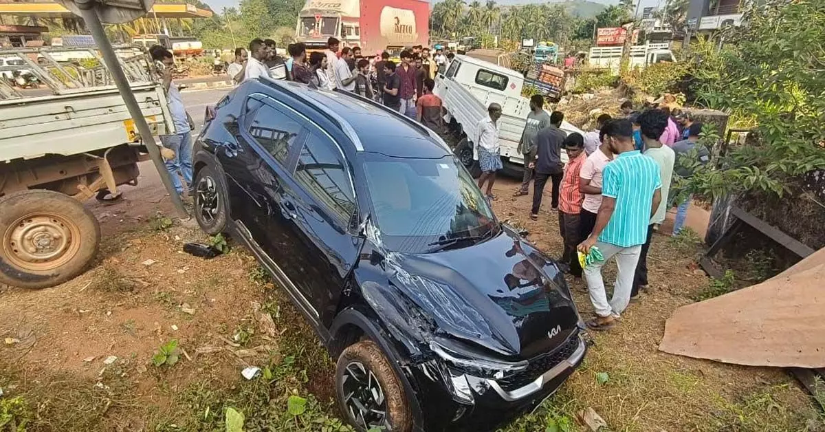 ಕೇರಳದಿಂದ ಮಹಾರಾಷ್ಟ್ರದ ಕಡೆಗೆ ತೆರಳುತ್ತಿದ್ದ ಕಾರಿನ ಮುಂದೆ ಏಕಾಏಕಿ ಹಸು ಅಡ್ಡ ಬಂದಿದ್ದು, ಅದಕ್ಕೆ ಢಿಕ್ಕಿ ಹೊಡೆಯುವುದನ್ನು ತಪ್ಪಿಸಲು ಚಾಲಕ ವಾಹನವನ್ನು ಬದಿಗೆ ತಿರುಗಿಸಿದ್ದಾನೆ. ಈ ವೇಳೆ ಕಾರು ಮೊದಲು ಗೂಡ್ಸ್ ಆಟೊ ರಿಕ್ಷಾಗೆ ಢಿಕ್ಕಿ ಹೊಡೆದಿದೆ. ನಂತರ ಹೊಸದಾಗಿ ಖರೀದಿಸಿದ ಬೊಲೆರೊ ಪಿಕ್ಅಪ್, ನಂತರ ದುರಸ್ತಿ ಮುಗಿಸಿ ಗ್ಯಾರೇಜ್ನಿದ ಹೊರಬಂದ ಇನ್ನೊಂದು ಪಿಕ್ಅಪ್ಗೆ ಢಿಕ್ಕಿ ಹೊಡೆದಿದೆ. ಬಳಿಕ ವಾಹನಗಳ ವೇಗ ಸೂಚಿಸುವ ಸೈನ್ ಬೋರ್ಡ್ ಕಂಬಕ್ಕೂ ಢಿಕ್ಕಿ ಹೊಡೆದಿದೆ. ಢಿಕ್ಕಿಯ ಪರಿಣಾಮ ಎಲ್ಲ ವಾಹನಗಳು ರಸ್ತೆ ಕೆಳಗಿನ ಇಳಿಜಾರಿನೊಳಗೆ ಜಾರಿ ಬಿದ್ದವು ಎಂದು ಪ್ರತ್ಯಕ್ಷದರ್ಶಿಗಳು ಮಾಹಿತಿ ನೀಡಿದ್ದಾರೆ.