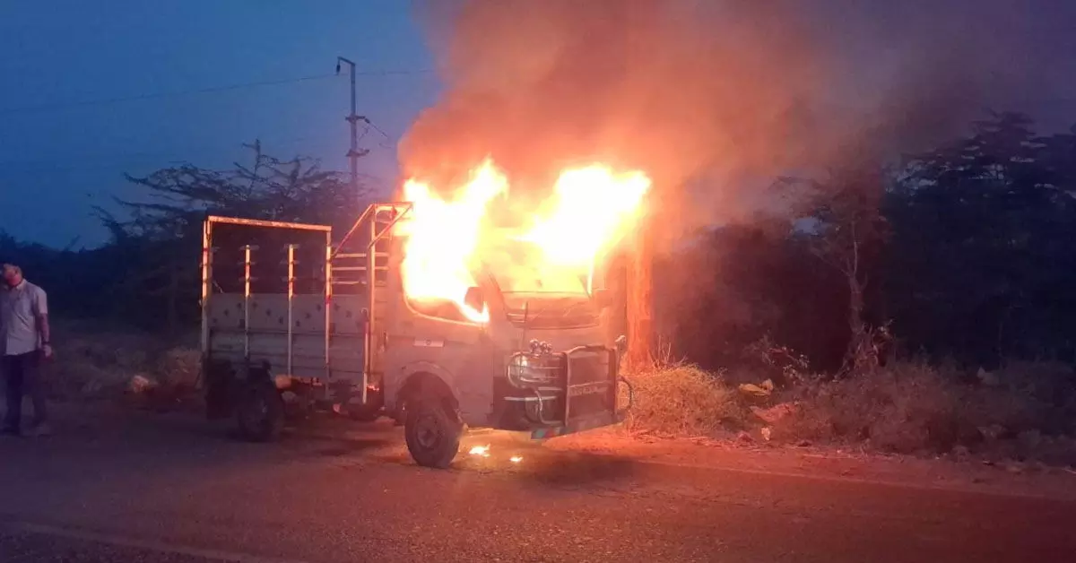 ವಿಜಯನಗರ | ಚಲಿಸುತ್ತಿದ್ದ ಟಾಟಾ ಏಸ್ ವಾಹನ ಬೆಂಕಿಗಾಹುತಿ: ಚಾಲಕ ಅಪಾಯದಿಂದ ಪಾರು