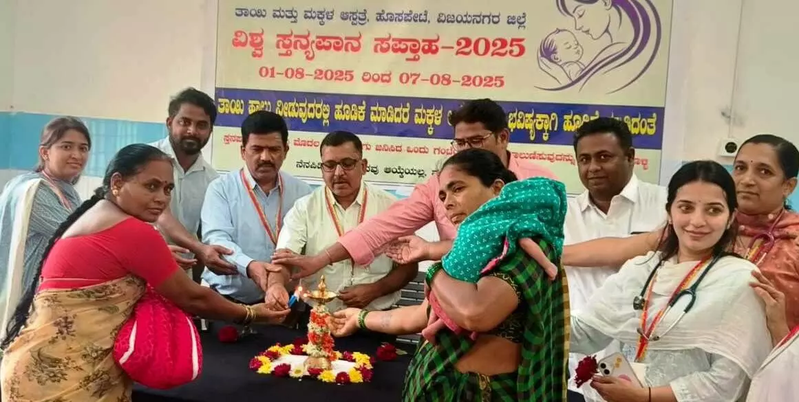 ವಿಜಯನಗರ(ಹೊಸಪೇಟೆ): ಶಿಶುವಿನ ಬೆಳವಣಿಗೆಗೆ ತಾಯಿಯ ಎದೆಹಾಲು ಅಮೃತಕ್ಕೆ ಸಮಾನವಾದದು ಎಂದು ಜಿಲ್ಲಾ ಆರೋಗ್ಯ ಮತ್ತು ಕುಟುಂಬ ಕಲ್ಯಾಣಧಿಕಾರಿ ಡಾ.ಶಂಕರ್ ನಾಯ್ಕ್ ಎಲ್.ಆರ್ ಹೇಳಿಕೆ ನೀಡಿದರು.