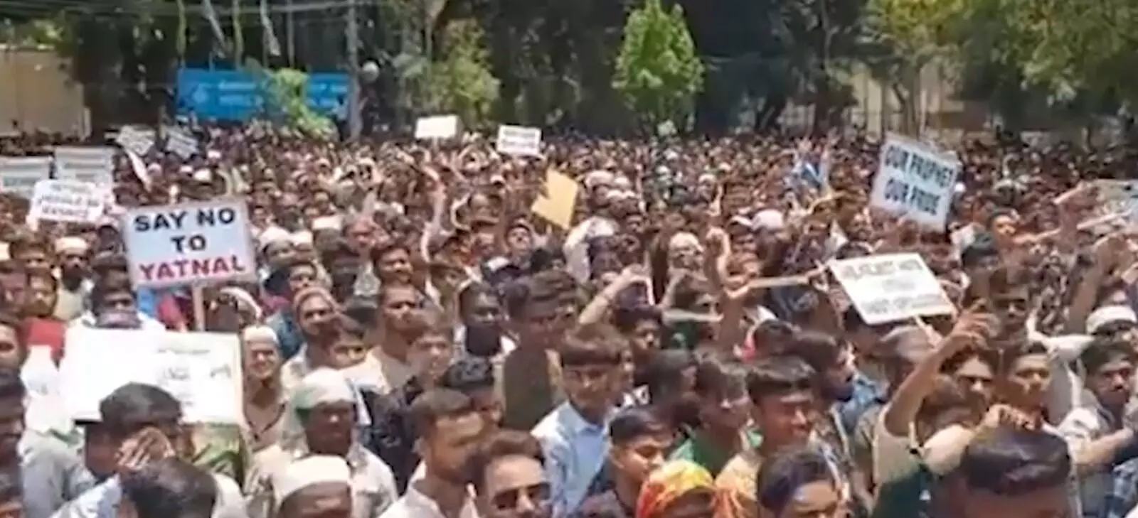 ವಿಜಯಪುರ: ಪ್ರವಾದಿ ಮುಹಮ್ಮದ್ ಪೈಗಂಬರ್ ಅವರ ಬಗ್ಗೆ ಅಗೌರವ ತೋರುವ ಹೇಳಿಕೆ ನೀಡಿರುವ ವಿಜಯಪುರ ನಗರ ಶಾಸಕ ಬಸನಗೌಡ ಪಾಟೀಲ ಯತ್ನಾಳ್ ಅವರ ವಿರುದ್ಧ ಕ್ರಮಕ್ಕೆ ಆಗ್ರಹಿಸಿ ವಿಜಯಪುರದಲ್ಲಿ ಮುಸ್ಲಿಮರು ಪ್ರತಿಭಟನೆ ನಡೆಸಿದ್ದಾರೆ.