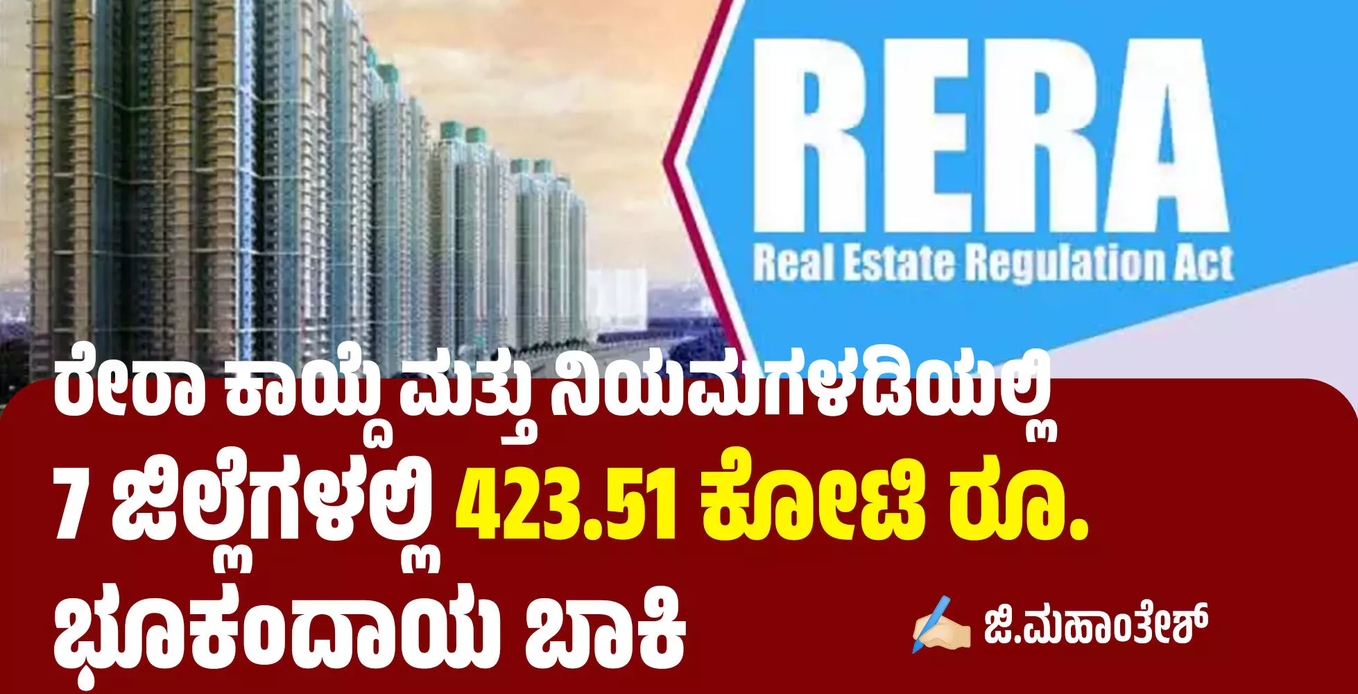 ರೇರಾ ಕಾಯ್ದೆ ಮತ್ತು ನಿಯಮಗಳಡಿಯಲ್ಲಿ 7 ಜಿಲ್ಲೆಗಳಲ್ಲಿ 423.51 ಕೋಟಿ ರೂ. ಭೂಕಂದಾಯ ಬಾಕಿ