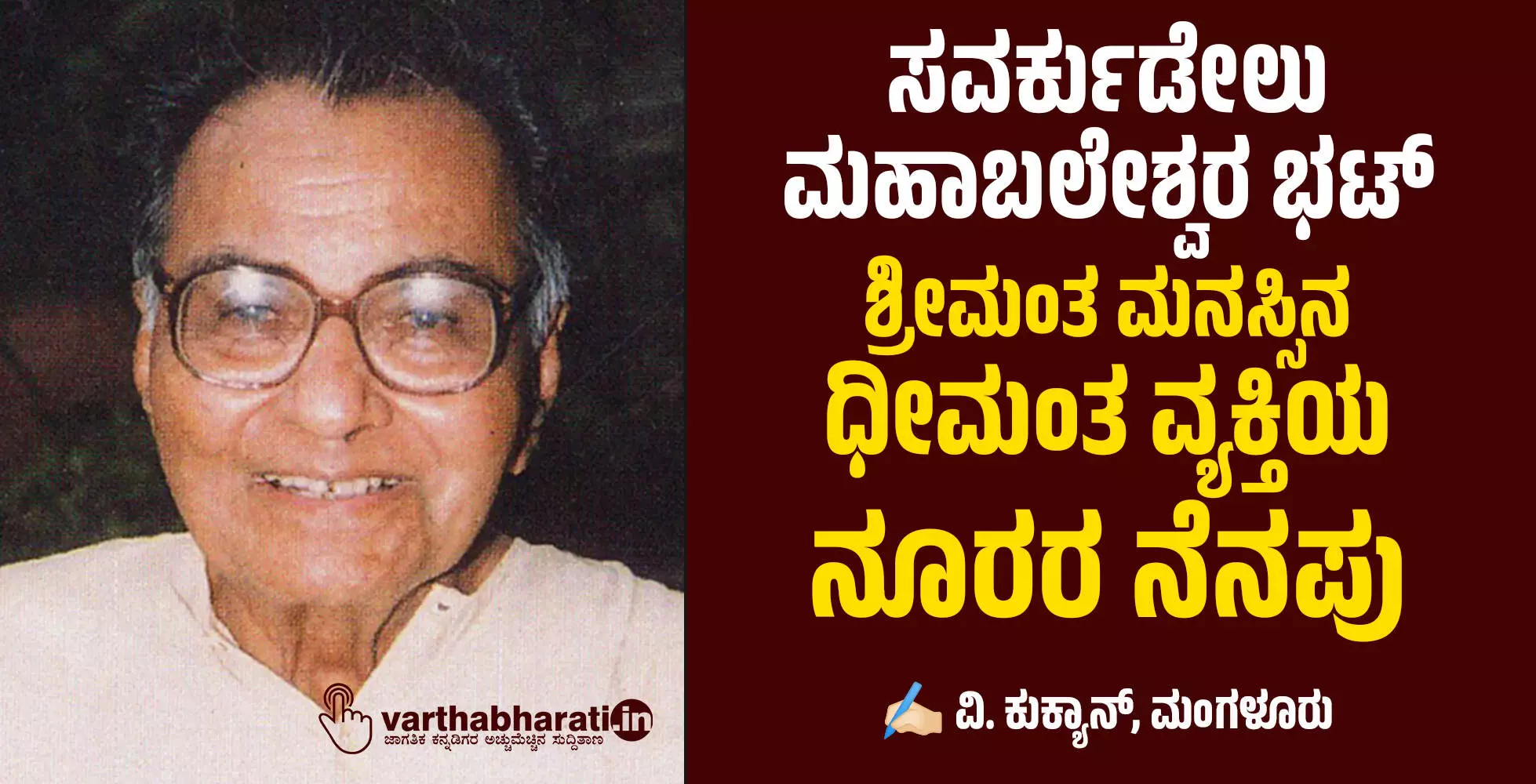 ಸವರ್ಕುಡೇಲು ಮಹಾಬಲೇಶ್ವರ ಭಟ್ ಶ್ರೀಮಂತ ಮನಸ್ಸಿನ ಧೀಮಂತ ವ್ಯಕ್ತಿಯ ನೂರರ ನೆನಪು