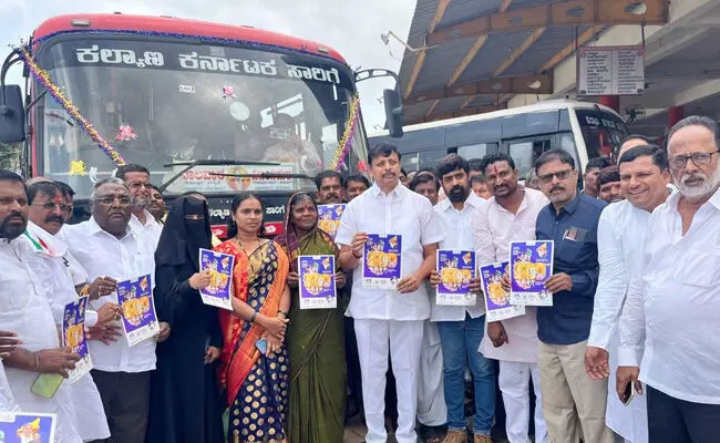 ಕಾರ್ಯಕ್ರಮದ ಅಂಗವಾಗಿ ಬಸ್ಗೆ ಹೂಮಾಲೆ ಹಾಕಿ ಪೂಜೆ ಸಲ್ಲಿಸಿ ನಂತರ ಬಸ್ಲ್ಲಿ ಪ್ರಯಾಣಿಸುತ್ತಿದ್ದ ಮಹಿಳೆಯರಿಗೆ ಸಿಹಿ ನೀಡಿ ಸಂಭ್ರಮಾಚರಿಸಿದರು.