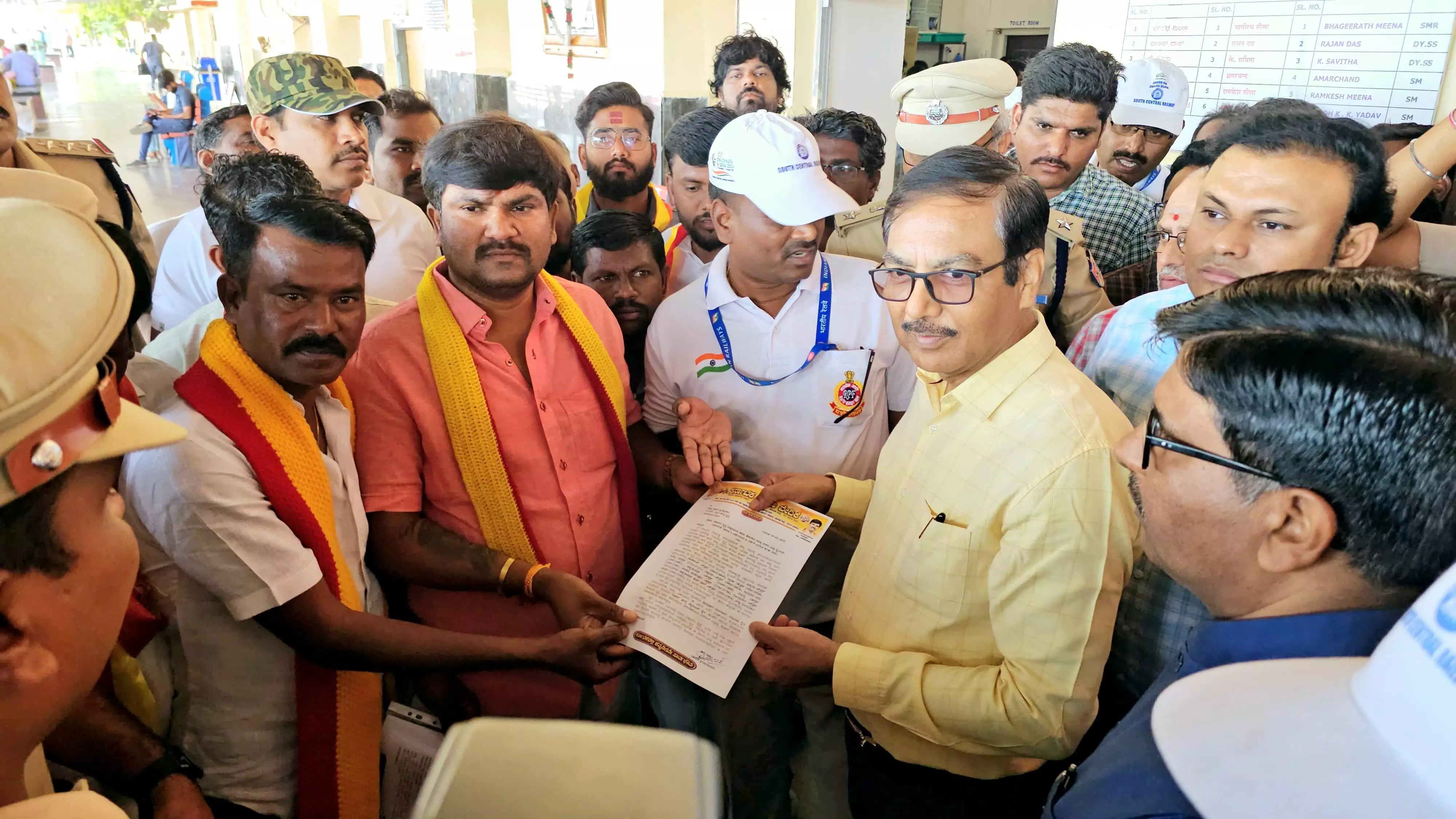 ಯಾದಗಿರಿ : ದಕ್ಷಿಣ ಕೇಂದ್ರ ರೈಲ್ವೆ ಸಿಕಂದರಬಾದ ವಿಭಾಗ ಪ್ರಧಾನ ವ್ಯವಸ್ಥಾಪಕ ಅವರು, ಯಾದಗಿರಿ ರೈಲ್ವೆ ನಿಲ್ದಾಣಕ್ಕೆ ಭೇಟಿ ನೀಡಿದ ಸಮಯದಲ್ಲಿ ಕರವೇ ಜಿಲ್ಲಾಧ್ಯಕ್ಷರಾದ ಟಿ.ಎನ್.ಭೀಮುನಾಯಕ ಅವರ ನೇತೃತ್ವದಲ್ಲಿ ರೈಲ್ವೆ ನಿಲ್ದಾಣದ ಸಮಸ್ಯೆಗಳ ಬಗ್ಗೆ ಚರ್ಚಿಸಿ ಮನವಿ ಪತ್ರ ಸಲ್ಲಿಸಿದರು.