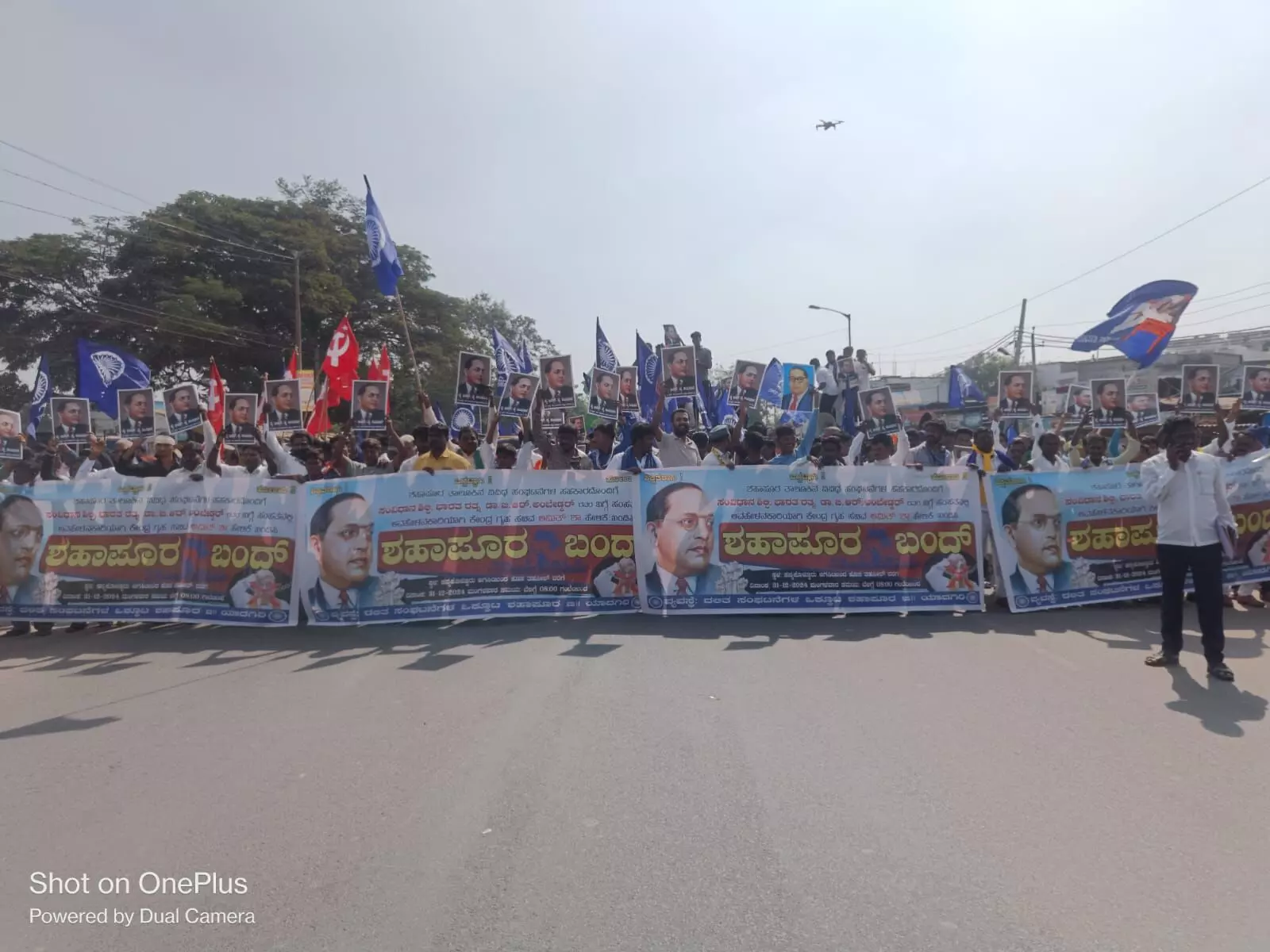 ಯಾದಗಿರಿ | ಬಿ.ಆರ್.ಅಂಬೇಡ್ಕರ್ ಕುರಿತ ಅಮಿತ್ ಶಾ ಹೇಳಿಕೆ ಖಂಡಿಸಿ ಪ್ರತಿಭಟನೆ; ಶಹಾಪೂರ ಸಂಪೂರ್ಣ ಸ್ತಬ್ಧ