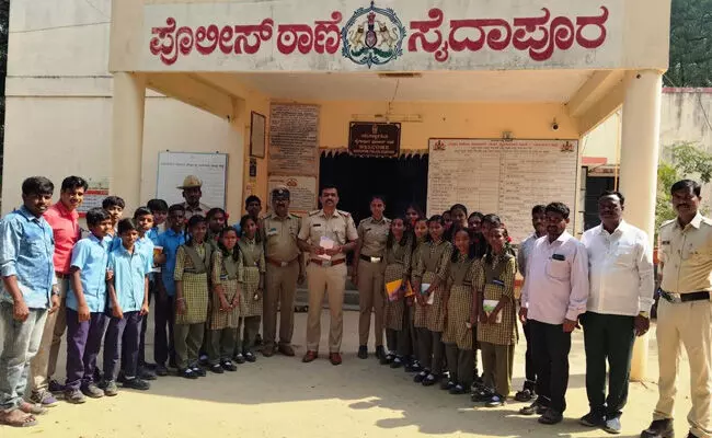 ಯಾದಗಿರಿ/ ಸೈದಾಪುರ : ಪೊಲೀಸ್ ಎಂದರೆ ಜನಸಾಮಾನ್ಯರ ಕಷ್ಟದ ಸಮಸ್ಯೆಗಳಿಗೆ ತಕ್ಷಣವೇ ಸ್ಪಂದಿಸುವ ರಕ್ಷಕ ಎಂದು ಸೈದಾಪುರ ಪೊಲೀಸ್ ಠಾಣೆಯ ಪಿಐ ವಿನಾಯಕ್ ಅವರು ಶಾಲಾ ವಿದ್ಯಾರ್ಥಿಗಳಿಗೆ ತಿಳಿಸಿದರು.
