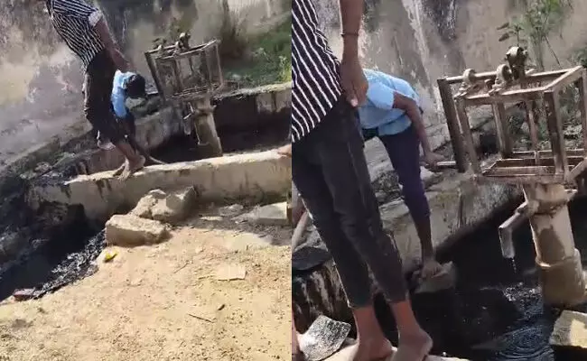 ಯಾದಗಿರಿ : ಮುಖ್ಯಶಿಕ್ಷಕರೊಬ್ಬರು ಶಾಲಾ ಮಕ್ಕಳಿಂದ ಕೊಳಚೆ ಬೋರ್ವೆಲ್ ಚರಂಡಿಯನ್ನು ಸ್ವಚ್ಚ ಮಾಡಿಸಿದ ಘಟನೆ ಜಿಲ್ಲೆಯ ವಡಗೇರಾ ತಾಲ್ಲೂಕಿನ ಕಾಡಮಗೇರಾ (ಬಿ) ಪಂಚಾಯಿತಿ ವ್ಯಾಪ್ತಿಯ ಕ್ಯಾತನಾಳ ಗ್ರಾಮದ ಸರಕಾರಿ ಶಾಲೆಯಲ್ಲಿ ನಡೆದಿದೆ.