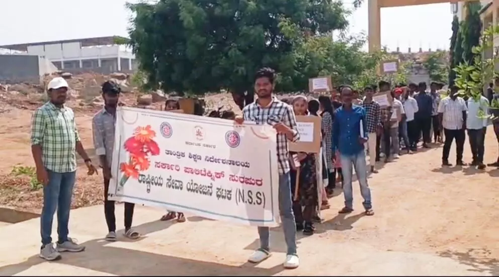 ಯಾದಗಿರಿ | ಸುರಪುರ-ಪಾಲಿಟೆಕ್ನಿಕ್ ಕಾಲೇಜ್ ವಿದ್ಯಾರ್ಥಿಗಳಿಂದ ʼಪರಿಸರ ಜಾಗೃತಿ ಜಾಥಾʼ : ಸ್ವಚ್ಛತಾ ಕಾರ್ಯಕ್ರಮ