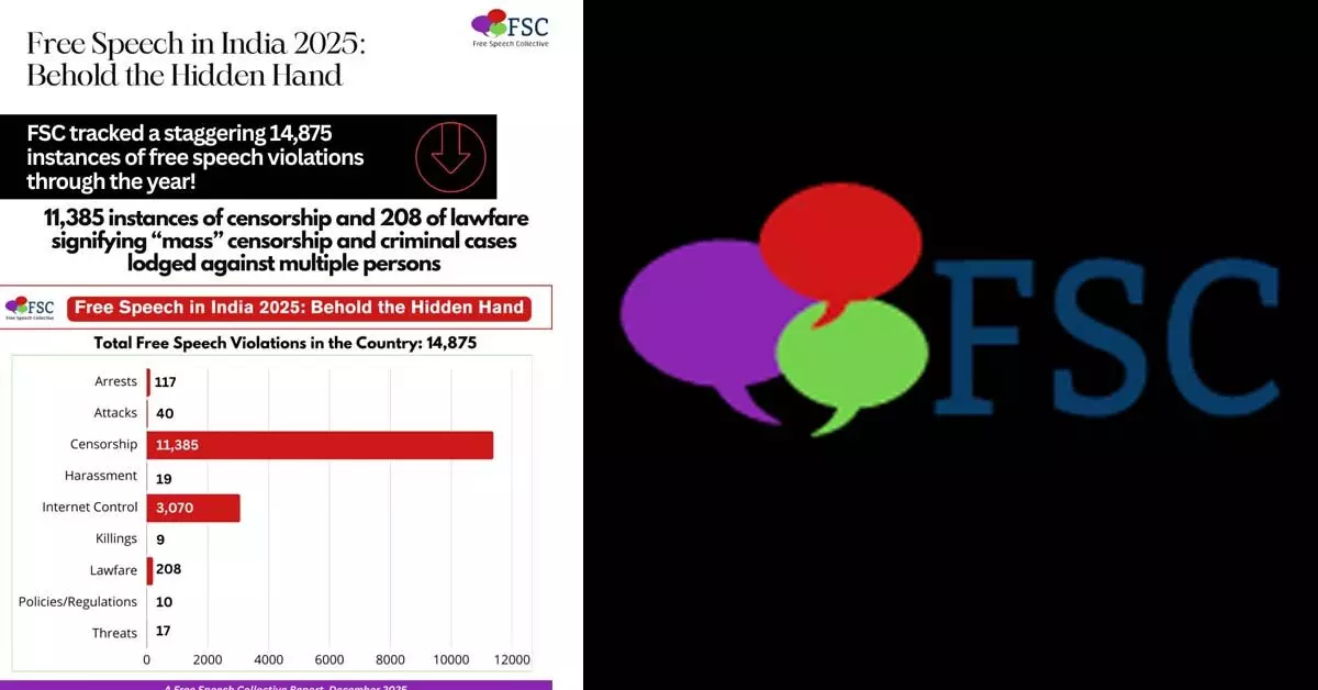ನಾಲಗೆಯಿದ್ದೂ ಮಾತನಾಡಲಾಗದ ಮೂಗ ವರ್ಷವೆಂದು 2025 ಗುರುತಿಸಲ್ಪಡುತ್ತಿದೆ. ಈ ಹಿಂದಿಗಿಂತ ಅತಿ ಹೆಚ್ಚು ವಾಕ್ ಸ್ವಾತಂತ್ರ್ಯ ಅಥವಾ ಅಭಿವ್ಯಕ್ತಿ ಸ್ವಾತಂತ್ರ್ಯದ ಉಲ್ಲಂಘನೆಯಾಗಿರುವ ವರ್ಷ ಇದು ಎಂದು ಫ್ರೀ ಸ್ಪೀಚ್ ಕಲೆಕ್ಟಿವಲ್ ತನ್ನ ವರದಿಯಲ್ಲಿ ತಿಳಿಸಿದೆ. 2025ರಲ್ಲಿ ವಾಕ್ ಸ್ವಾತಂತ್ರ್ಯದ ಉಲ್ಲಂಘನೆಯ ಸುಮಾರು 14,875 ಪ್ರಕರಣಗಳು ದಾಖಲಾಗಿವೆ. ಎಲ್ಲಕ್ಕಿಂತ ಮುಖ್ಯವಾಗಿ ಅಭಿವ್ಯಕ್ತಿ ಸ್ವಾತಂತ್ರ್ಯದ ಹಕ್ಕನ್ನು ಎತ್ತಿ ಹಿಡಿದ ಕಾರಣಕ್ಕಾಗಿಯೇ ಈ ದೇಶದಲ್ಲಿ ಎಂಟು ಪತ್ರಕರ್ತರು ಮತ್ತು ಒಬ್ಬ ಸಾಮಾಜಿಕ ಮಾಧ್ಯಮ ವ್ಯಕ್ತಿಯ ಹತ್ಯೆಗಳಾಗಿವೆ ಎಂದು ಫ್ರೀ ಸ್ಪೀಚ್ ಕಲೆಕ್ಟಿವ್ ಮಂಗಳವಾರ ಬಿಡುಗಡೆ ಮಾಡಿದ ತನ್ನ ವರದಿಯನ್ನು ವಿವರಿಸಿದೆ. ವಾಕ್ ಸ್ವಾತಂತ್ರ್ಯದ ಪ್ರಕರಣಗಳಲ್ಲಿ ಸೆನ್ಸರ್ಶಿಪ್, ನ್ಯಾಯಾಂಗ ನಿಷೇಧ ಆದೇಶಗಳು, ಶೈಕ್ಷಣಿಕ ಸ್ವಾತಂತ್ರ್ಯದ ನಿಯಂತ್ರಣ, ಚಲನಚಿತ್ರ ಪ್ರಮಾಣೀಕರಣಕ್ಕೆ ಸಂಬಂಧಿಸಿದ ನಿರ್ಬಂಧಗಳೂ ಸೇರಿವೆ. ಅಭಿವ್ಯಕ್ತಿ ಸ್ವಾತಂತ್ರ್ಯವನ್ನು ಎತ್ತಿ ಹಿಡಿದ ಕಾರಣಕ್ಕಾಗಿ 117 ಮಂದಿಯನ್ನು ಪೊಲೀಸರು ಬಂಧಿಸಿದ್ದಾರೆ. ಎಲ್ಲಕ್ಕಿಂತ ಮುಖ್ಯವಾಗಿ ಅಭಿವ್ಯಕ್ತಿ ಸ್ವಾತಂತ್ರ್ಯ ಉಲ್ಲಂಘನೆಗೆ ಸಂಬಂಧಿಸಿದ 40 ದಾಳಿಗಳಲ್ಲಿ 33 ಪತ್ರಕರ್ತರನ್ನು ಗುರಿಯಾಗಿಸಲಾಗಿದೆ. 19 ಪ್ರಕರಣಗಳಲ್ಲಿ 14 ಪತ್ರಕರ್ತರಿಗೆ ಮಾನಸಿಕ ದೈಹಿಕ ಕಿರುಕುಳವನ್ನು ನೀಡಲಾಗಿದೆ. ಪತ್ರಕರ್ತರು ತಮ್ಮ ಕೆಲಸದ ಸಮಯದಲ್ಲಿ ಬೆದರಿಕೆಗಳನ್ನು ಸ್ವೀಕರಿಸಿದ 12 ಪ್ರಕರಣಗಳು ದಾಖಲಾಗಿವೆ. ಎಂಟು ಪತ್ರಕರ್ತರನ್ನು ಹತ್ಯೆ ಮಾಡಲಾಗಿದ್ದು ಅವರಲ್ಲಿ ಇಬ್ಬರು ಉತ್ತರ ಪ್ರದೇಶ ರಾಜ್ಯಕ್ಕೆ ಸೇರಿದವರು. ಅಂಡಮಾನ್-ನಿಕೋಬಾರ್, ಛತ್ತೀಸ್ಗಡ, ಹರ್ಯಾಣ, ಕರ್ನಾಟಕ, ಒಡಿಶಾ ಹಾಗೂ ಉತ್ತರಾಖಂಡದಲ್ಲಿ ತಲಾ ಒಬ್ಬರನ್ನು ಹತ್ಯೆಗೈಯಲಾಗಿದೆ. ಪಂಜಾಬ್ನಲ್ಲಿ ಸಾಮಾಜಿಕ ಮಾಧ್ಯಮದಲ್ಲಿ ಬರೆದ ಕಾರಣಕ್ಕಾಗಿ ವ್ಯಕ್ತಿಯನ್ನು ಕೊಂದು ಹಾಕಲಾಗಿದೆ. ಕಾಶ್ಮೀರ ಸೇರಿದಂತೆ ಈಶಾನ್ಯ ಭಾರತದ ಪತ್ರಕರ್ತರು ಬಾಯಿ ತೆರೆದರೆ ಅವರನ್ನು ಯುಎಪಿಎ ಕಾಯ್ದೆಯಲ್ಲಿ, ದೇಶದ್ರೋಹಿಗಳೆಂಬಂತೆ ಬಿಂಬಿಸಿ ಸುಲಭದಲ್ಲಿ ಬಂಧಿಸಲಾಗುತ್ತದೆ. ತಮ್ಮ ನಿರಪರಾಧಿತ್ವವನ್ನು ಸಾಬೀತು ಮಾಡುವುದು ಅವರ ಪಾಲಿಗೆ ದುಸ್ಸಾಧ್ಯ ಎನ್ನುವಂತಹ ಸ್ಥಿತಿ ನಿರ್ಮಾಣವಾಗಿದೆ. ವಾಕ್ ಸ್ವಾತಂತ್ರ್ಯದ ಉಲ್ಲಂಘನೆಯ ಹೆಸರಿನಲ್ಲಿ ಗುಜರಾತ್ನಲ್ಲಿ ಅತ್ಯಧಿಕ 108 ಪ್ರಕರಣಗಳು ದಾಖಲಾಗಿದ್ದರೆ, ಉತ್ತರ ಪ್ರದೇಶದಲ್ಲಿ 83 ಹಾಗೂ ಕೇರಳದಲ್ಲಿ 78 ವಾಕ್ ಸ್ವಾತಂತ್ರ್ಯ ಉಲ್ಲಂಘನೆಯ ಪ್ರಕರಣಗಳು ದಾಖಲಾಗಿವೆ ಎಂದು ವರದಿಗಳು ಹೇಳುತ್ತಿವೆ.